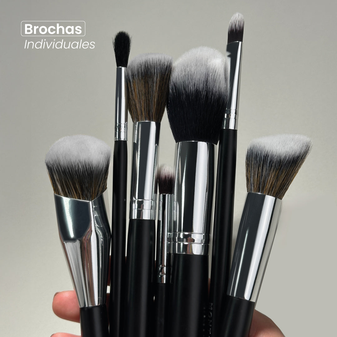 Las brochas están fabricadas con cerdas sintéticas de alta calidad, suaves y densas, que facilitan una aplicación uniforme y cómoda. Los mangos ofrecen un agarre ergonómico que mejora el control durante el uso. Esta combinación de materiales garantiza durabilidad y un acabado profesional en cada aplicación.